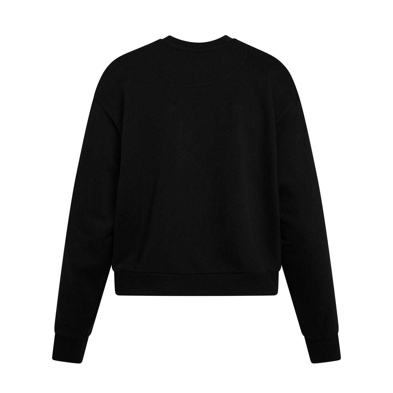 Sag Script Polished French Terry Crew Black Turquoise Embroidery